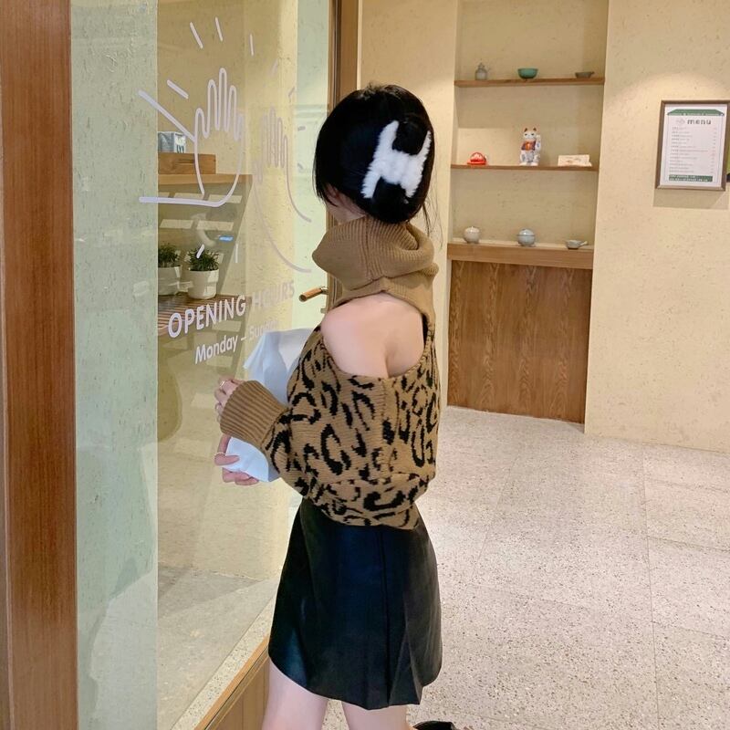 色:Kaレパードセーター,ピンクのヒョウのセーター,アプリコットホワイトショートスカート,黒スカート