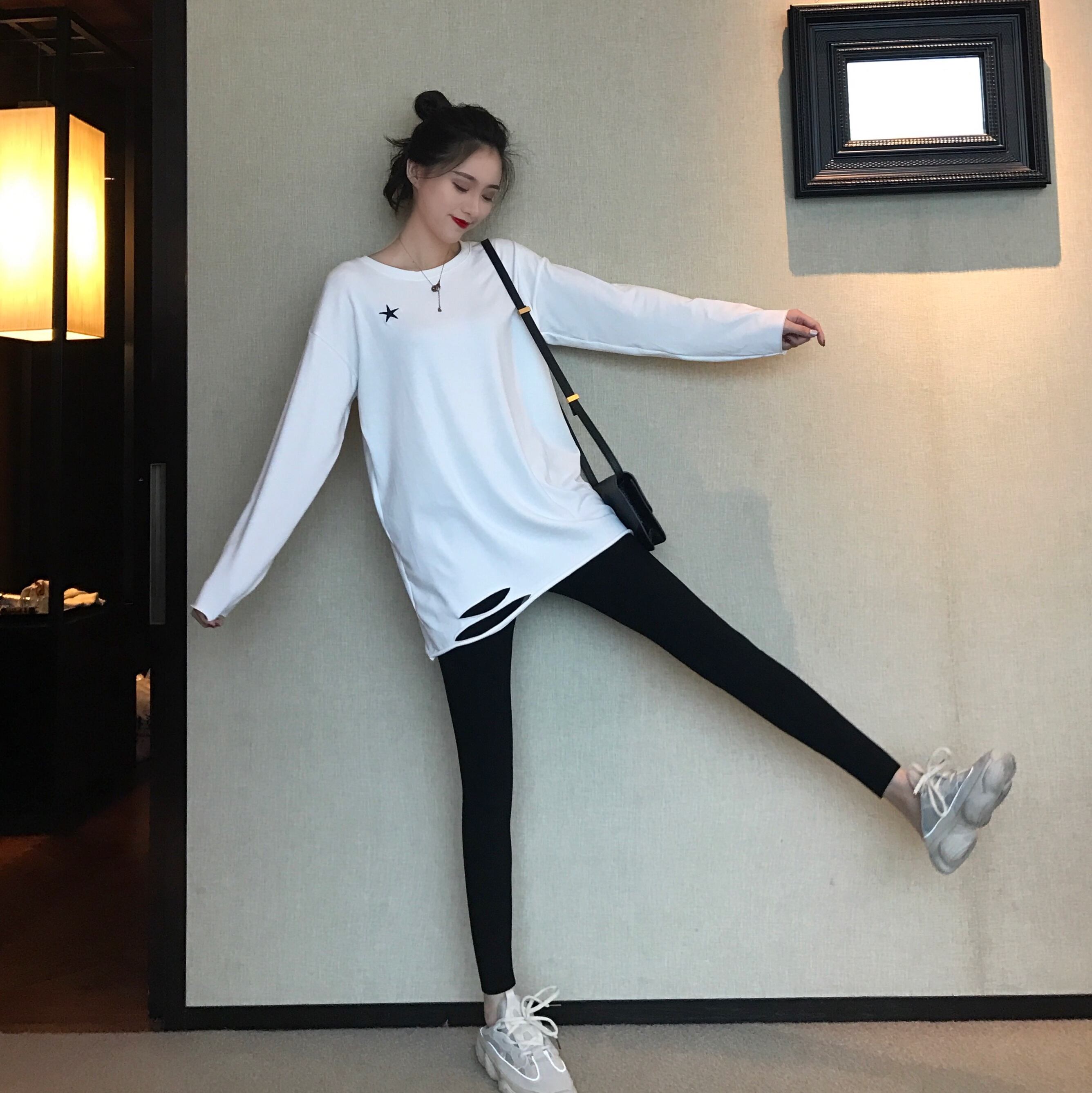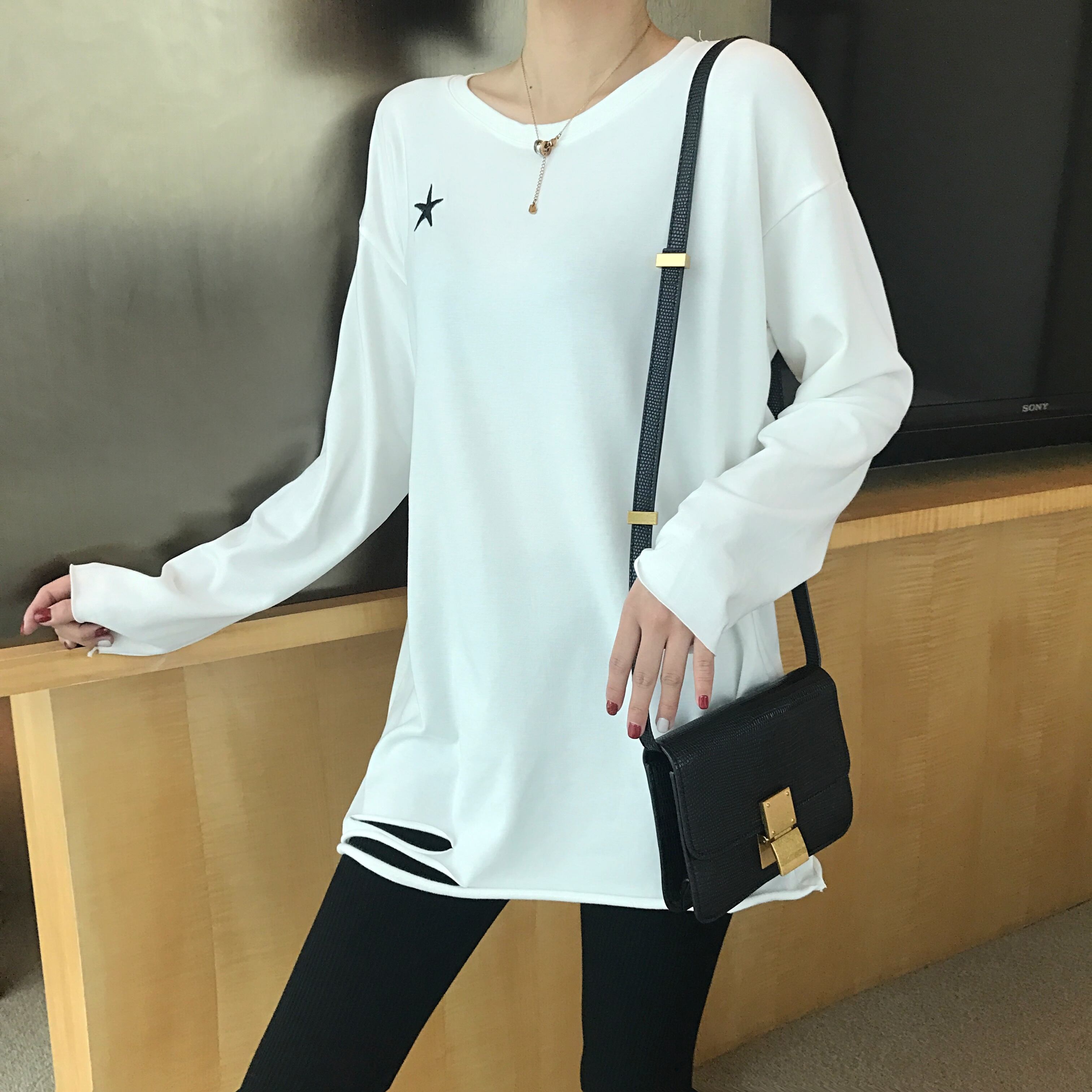 オータムホワイトシャツ トップス ルーズレッドTシャツ ロング 秋物 セブンプリンセス23680177207