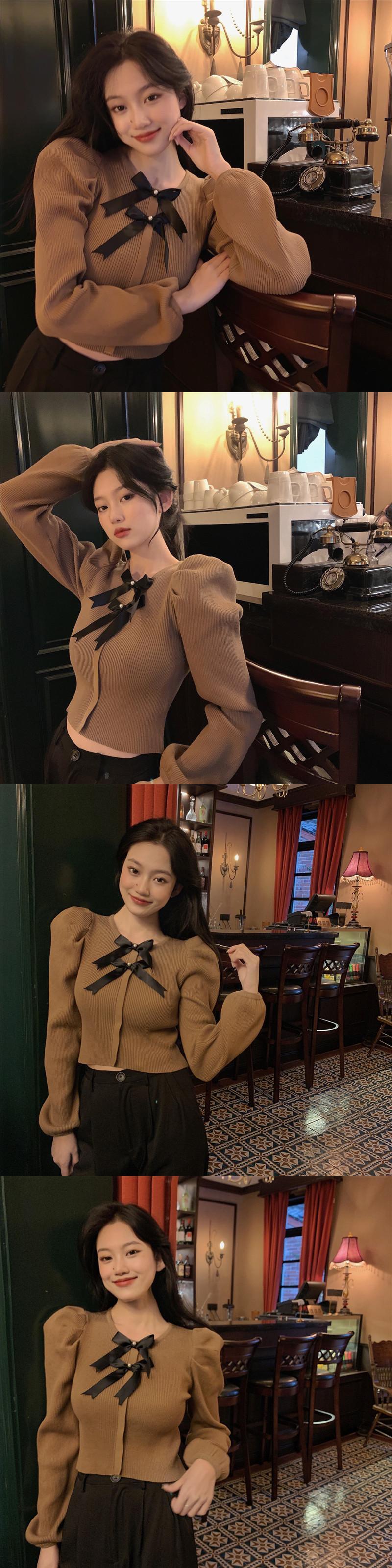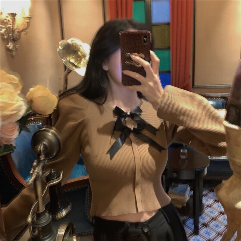 ニットセーター 薄手レディーススプリングオータムリボンショートトップス ロング 春物 秋物 セブンプリンセス32161825962