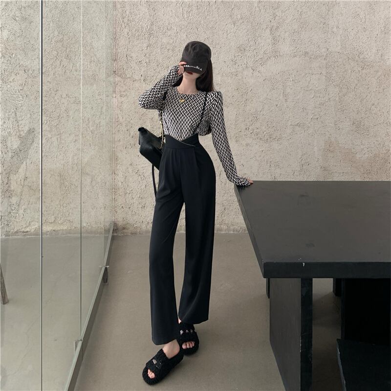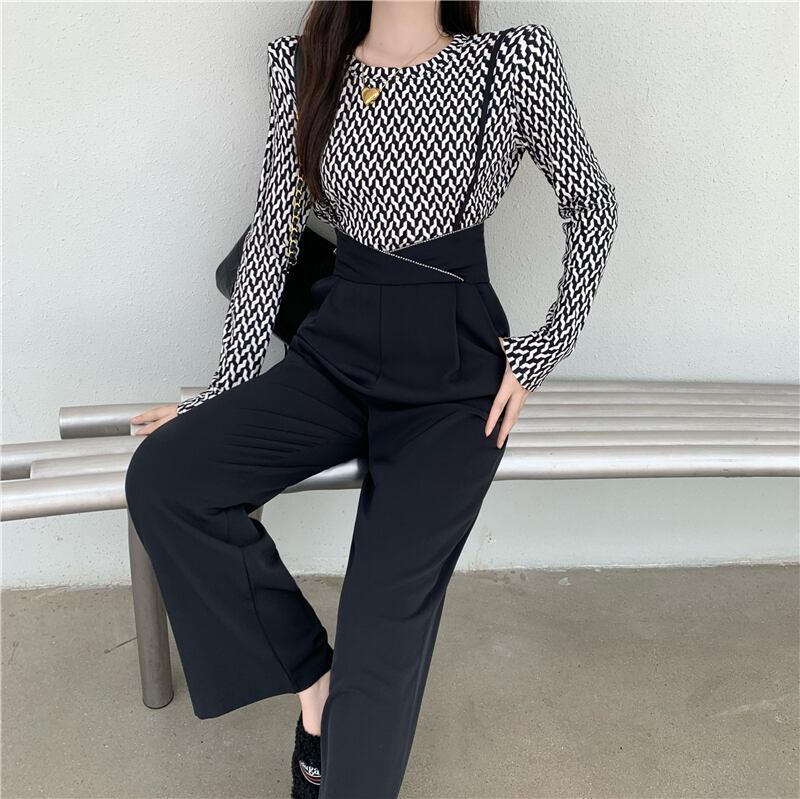 ラウンドネック長袖スリーブシャツ ジャンプスーツ オールインワン ロング Oネック セブンプリンセス40394939962