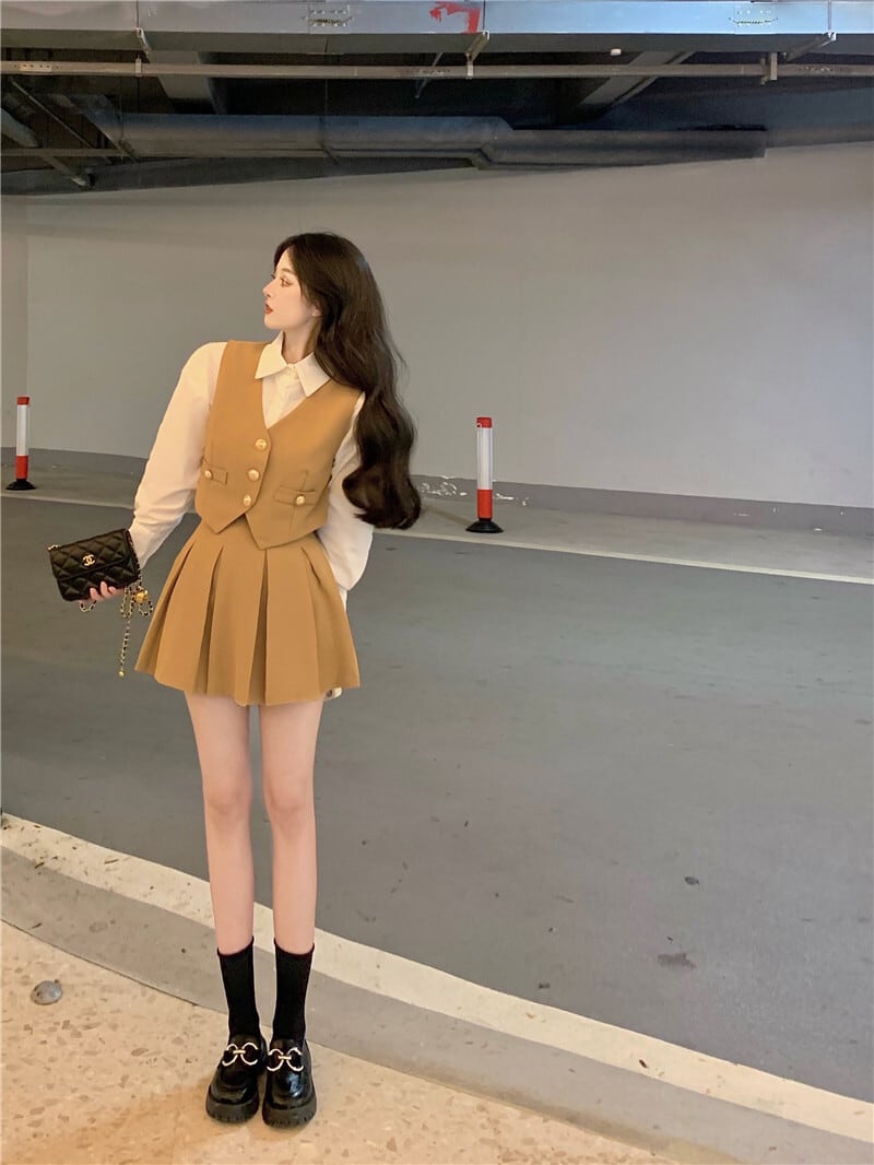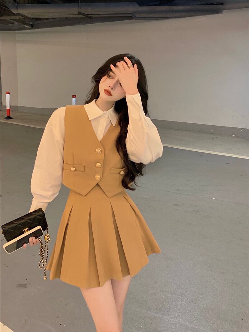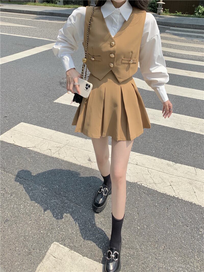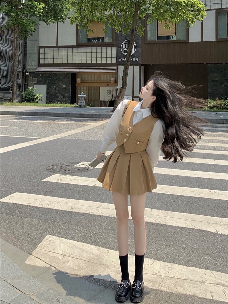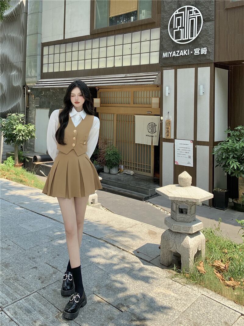 スタイルレディーススタンダードショートウェストハイウェストプリーツスカート オータム レトロ 秋物 セブンプリンセス52416916080