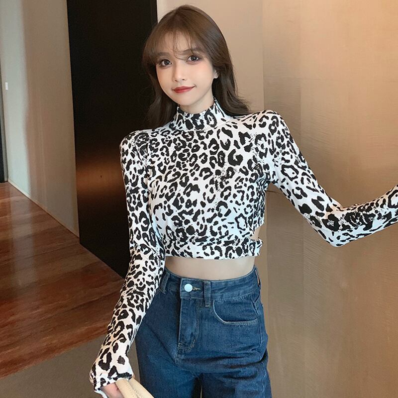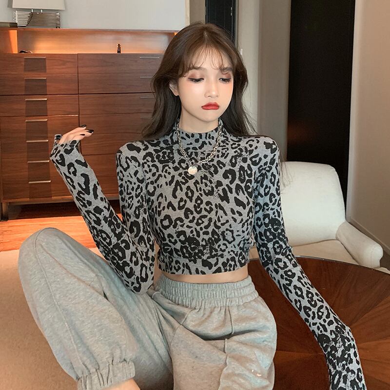 レオパードプリント柄シャツ オータムスリムTシャツ スタイル薄手ショートブラウス ロング 秋物 セブンプリンセス84040500196