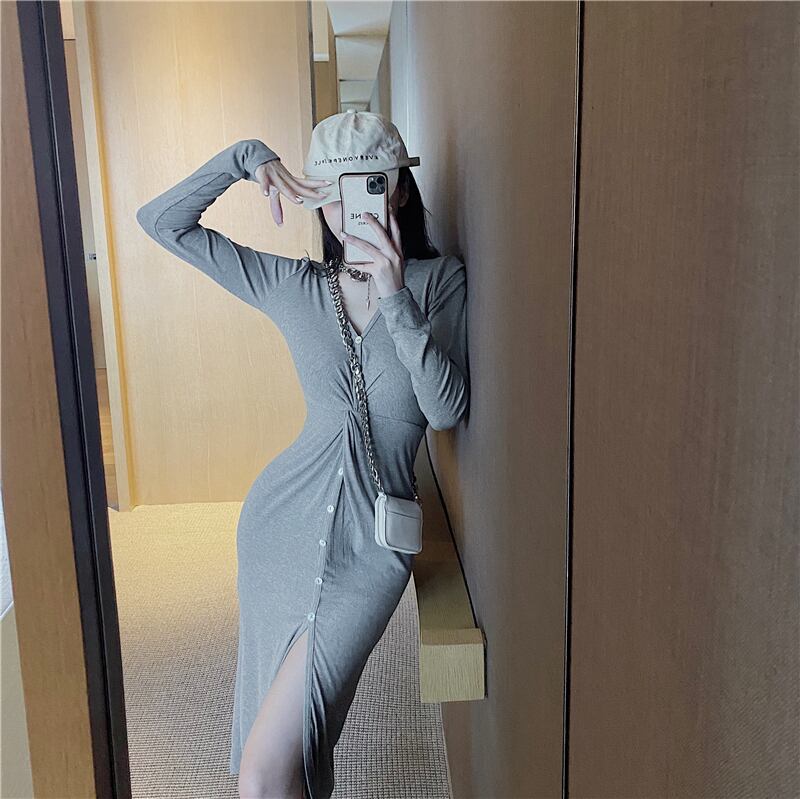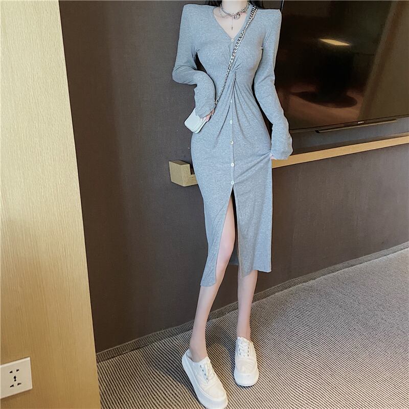 ドレス オータムVネックウェストスカート ロング 秋物 ピュア セブンプリンセス84562650436