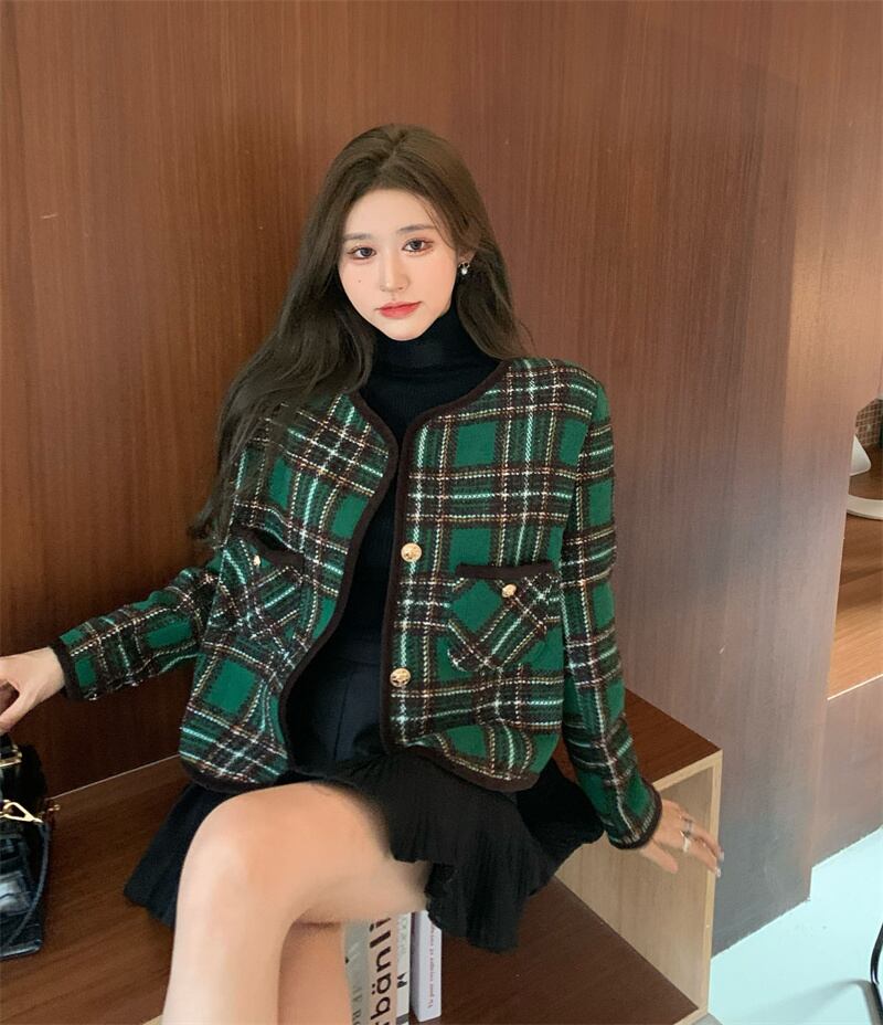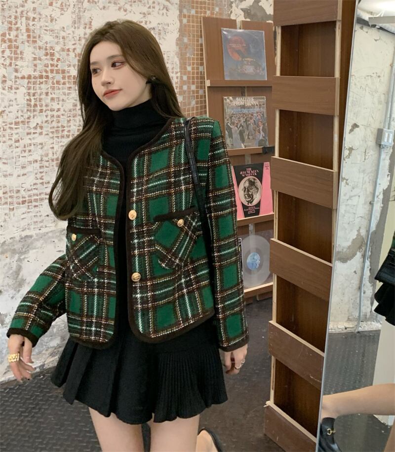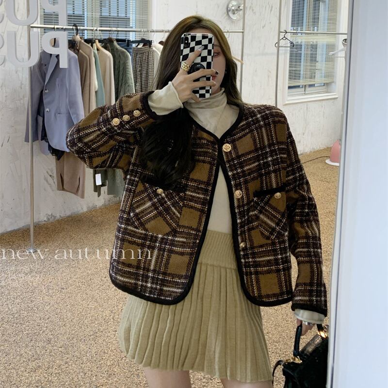 格子柄ジャケット スプリングオータムスタンダードショートシャツ ロング レトロ 春物 秋物 セブンプリンセス82052647983