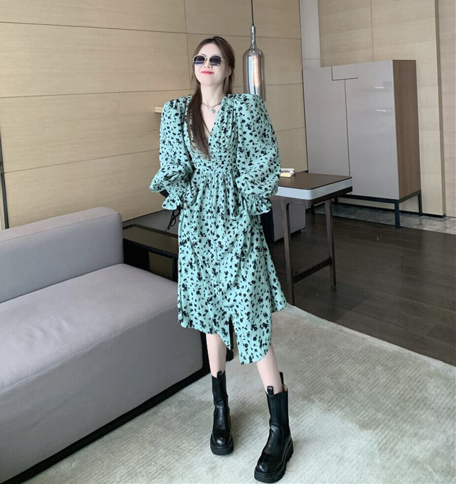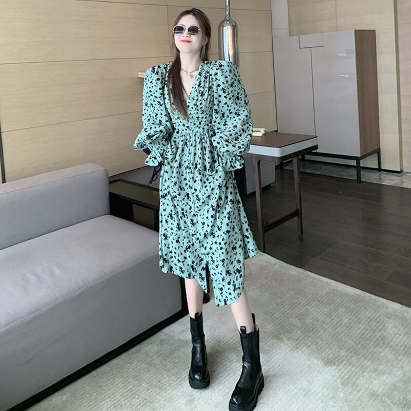 フローラルドレス オータムスタンダードウェストスカート 薄手Aライン ロング レトロ 秋物 花柄 セブンプリンセス56765612928