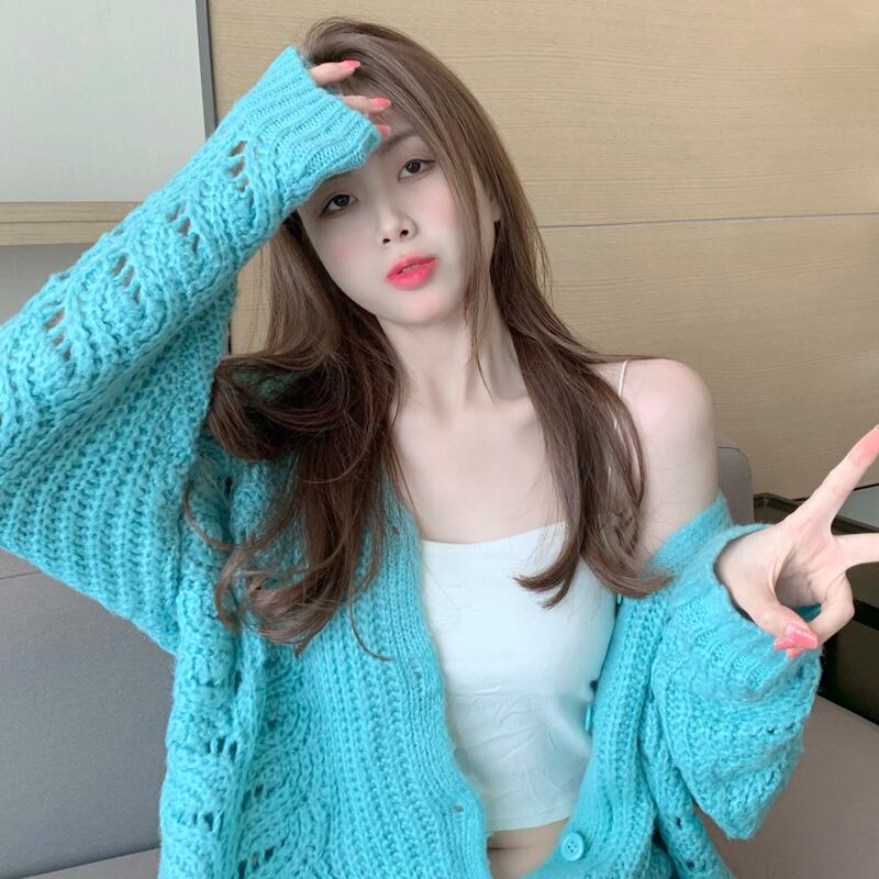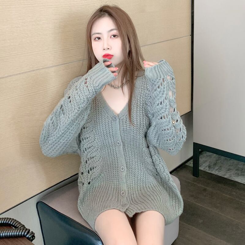 セーター ジャケット カーディガンスプリングオータムスタイルVネックルーズトップス ロング 春物 秋物 セブンプリンセス68646801216
