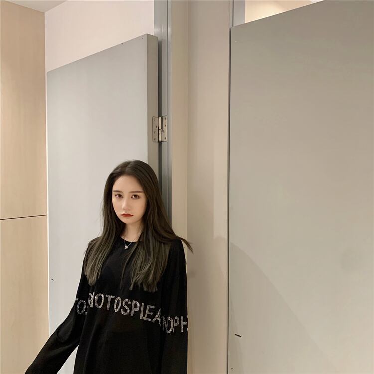 ブラックTシャツ サマー薄手ルーズレッドトップス ロング 夏物 セブンプリンセス23930499117