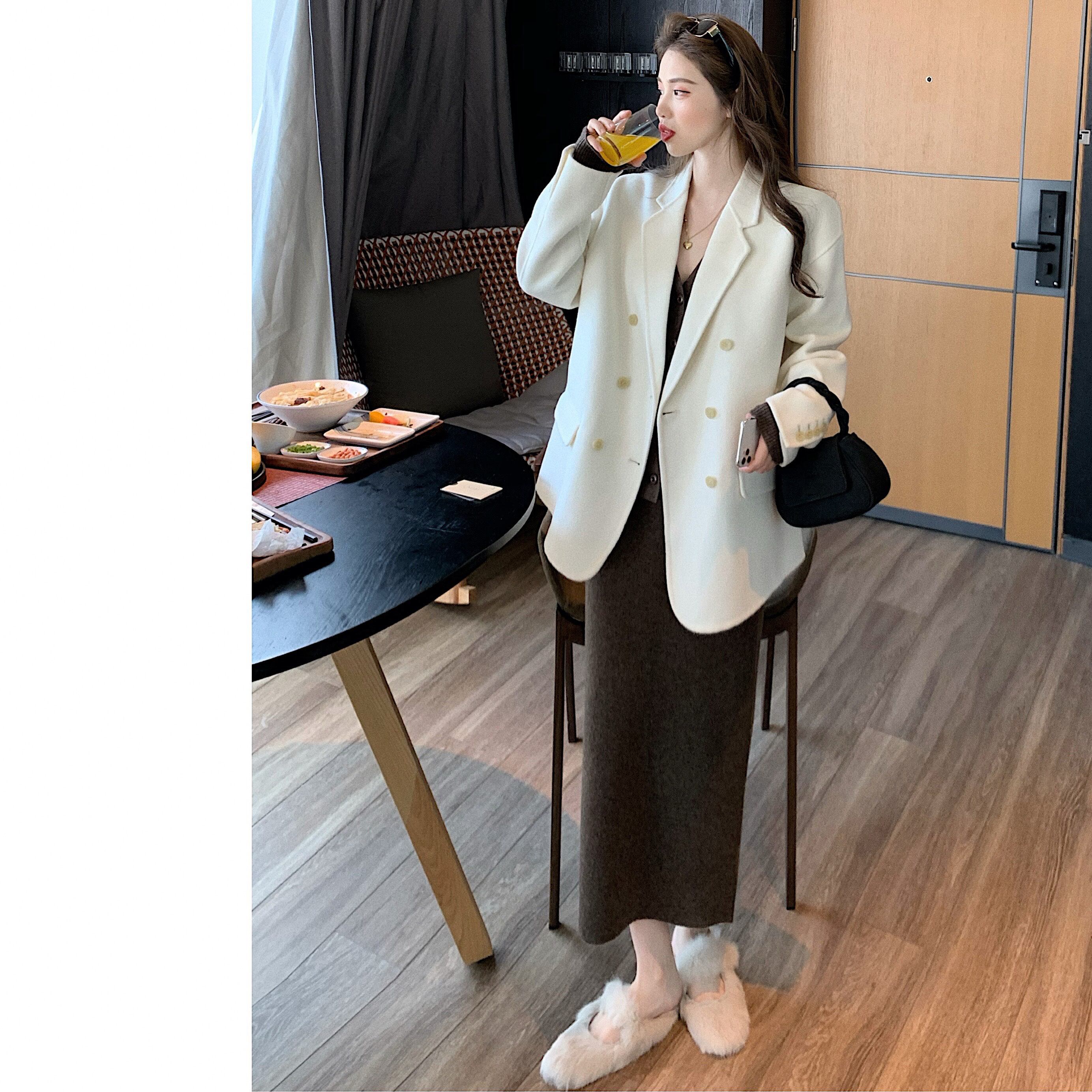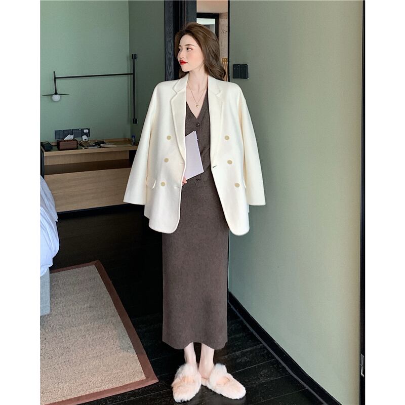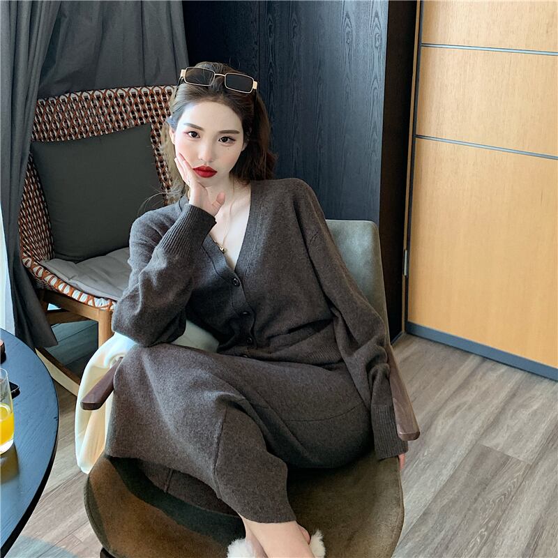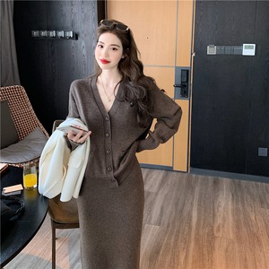 Vネックセーター コート カーディガンスプリングオータムスタンダードニットスリムトップス ロング レトロ 春物 秋物 セブンプリンセス82487880302