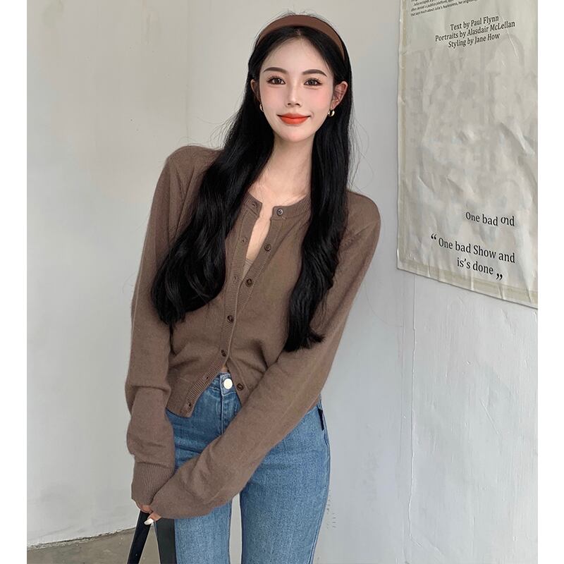 ボタンラウンドネックニットカーディガントップス Oネック セブンプリンセス89724284469