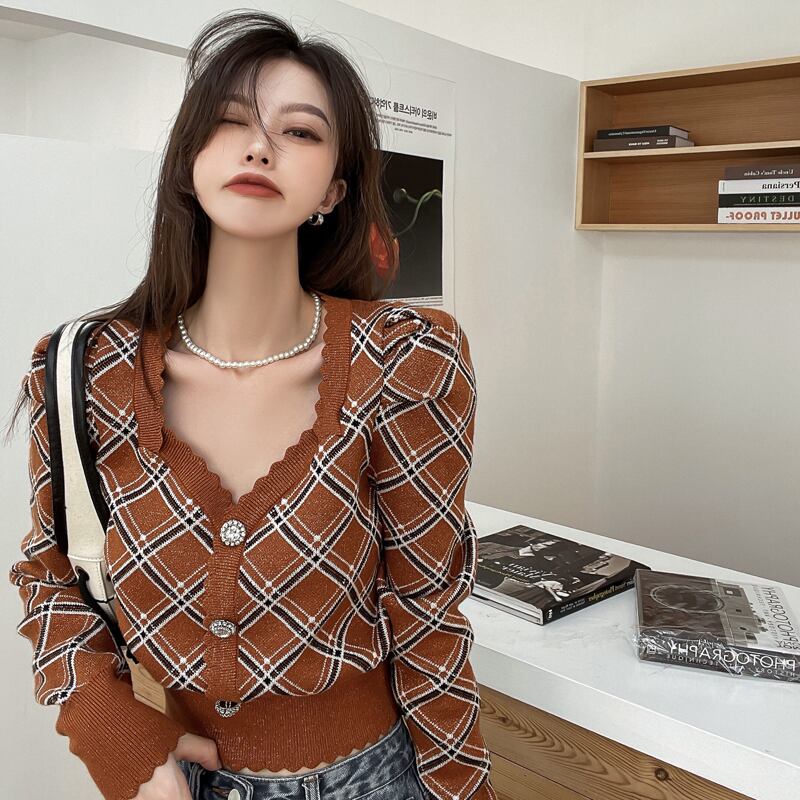 セーター コート カーディガンスプリングオータムスタンダードVネックウェストニットショートトップス ロング レトロ 春物 秋物 セブンプリンセス49769011726