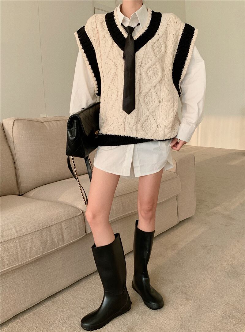 カラーVネックニットセーター ルーズシャツ セブンプリンセス14547976701