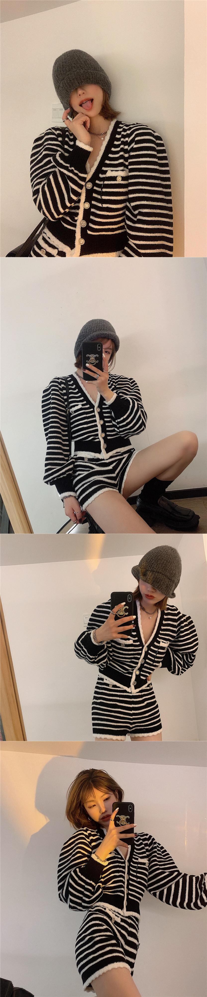 ストライプセーター コート カーディガンレディーススプリングオータムVネックルーズニットショートトップス ロング ランタンスリーブ 春物 秋物 セブンプリンセス38734175279