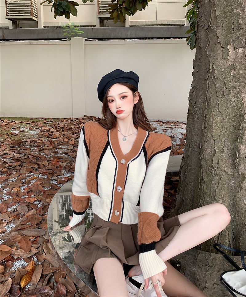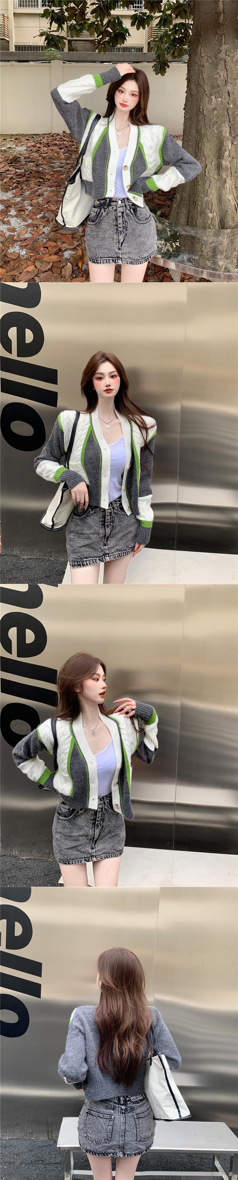 Vネックセーター コート カーディガンスプリングオータムスタンダードショートカラーニットトップス ロング レトロ 春物 秋物 セブンプリンセス49883213177