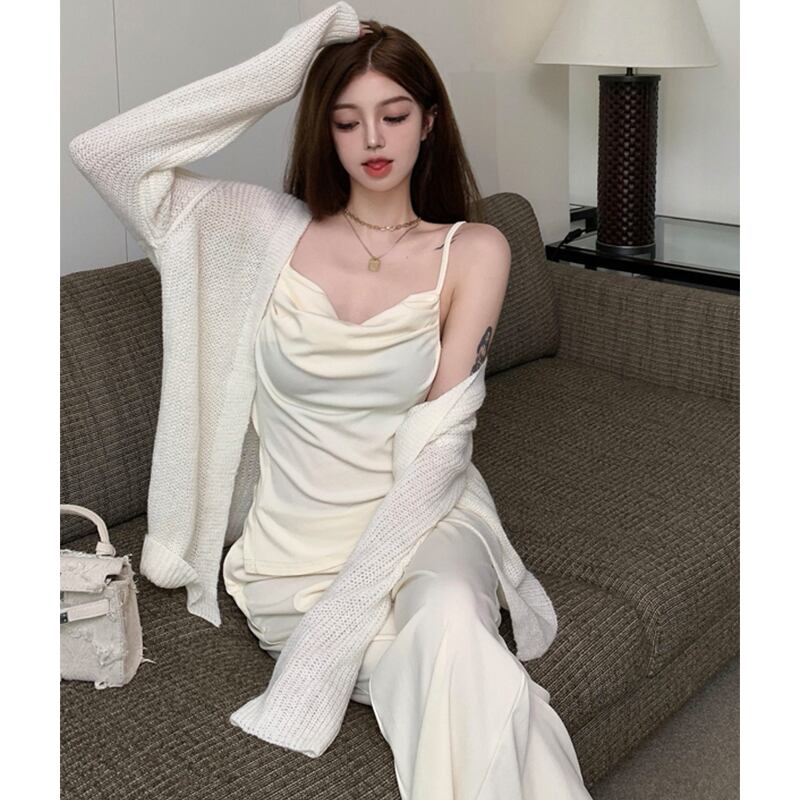 色:スリング,ワイドレッグパンツ,ニットカーディガン