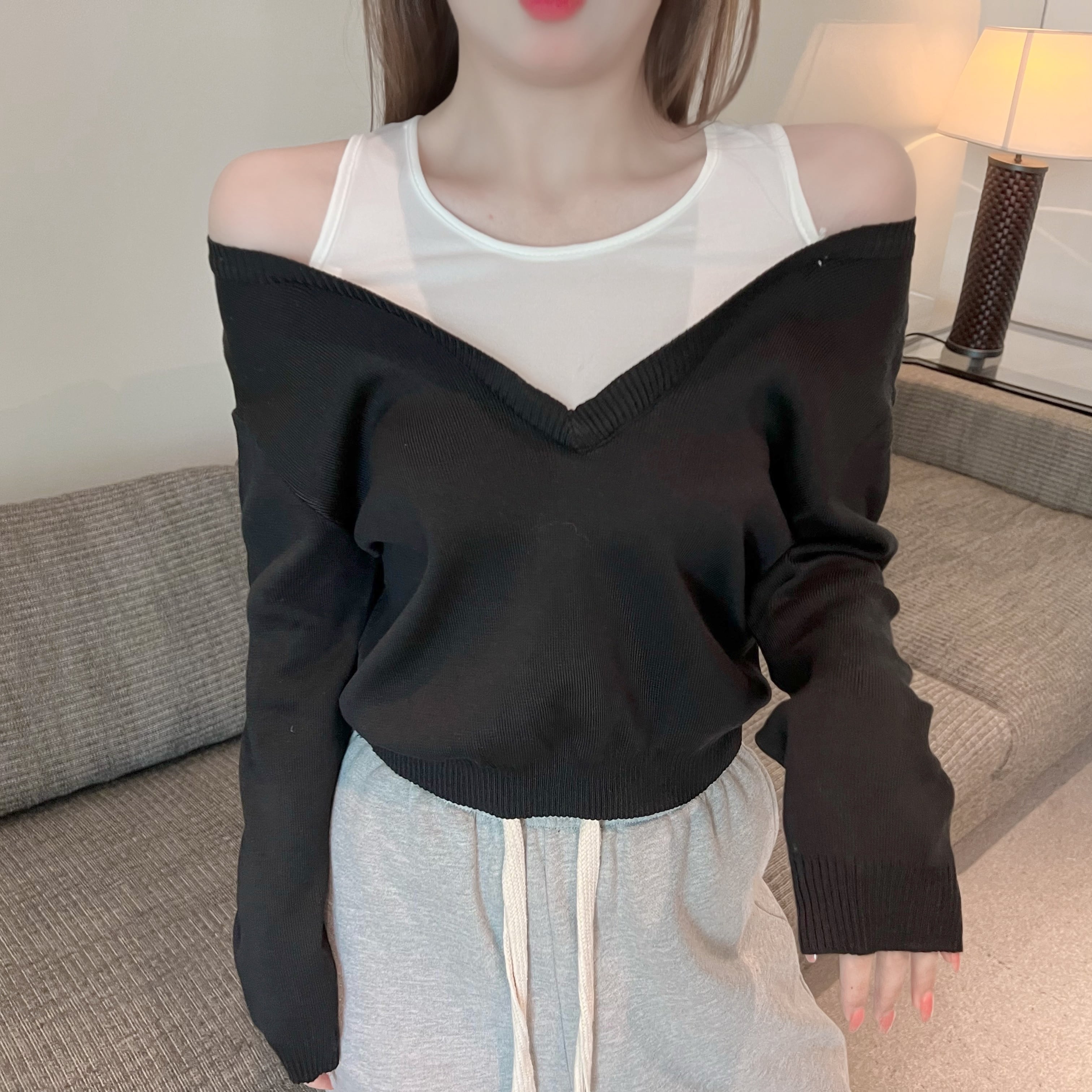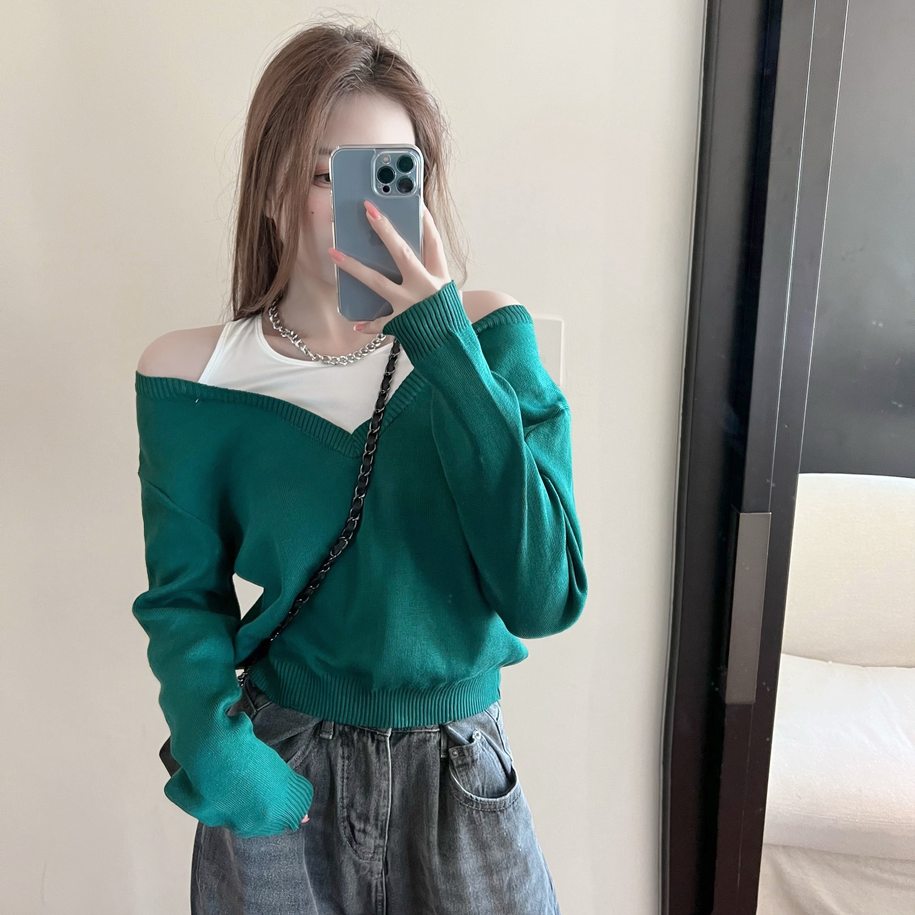 セーター レディースオータムウィンタールーズオフショルダープルオーバー トップス ロング 秋物 冬物 セブンプリンセス95184716046
