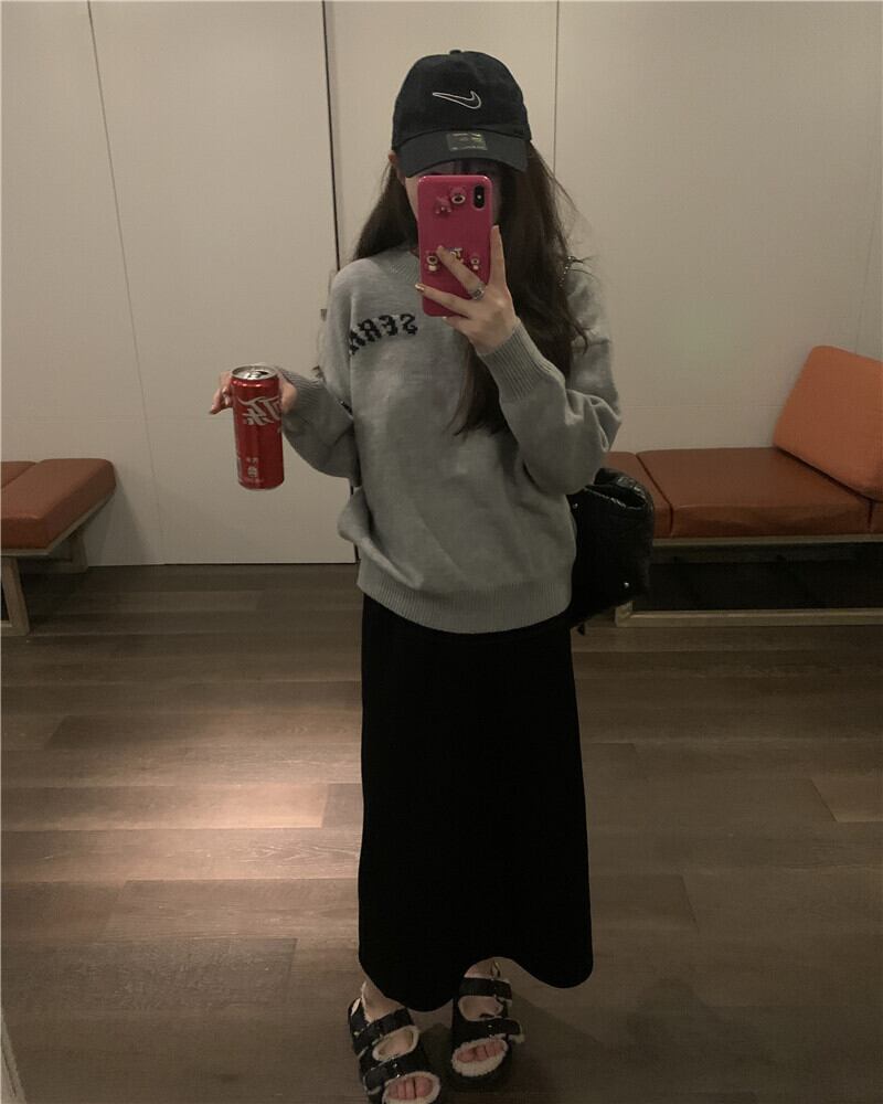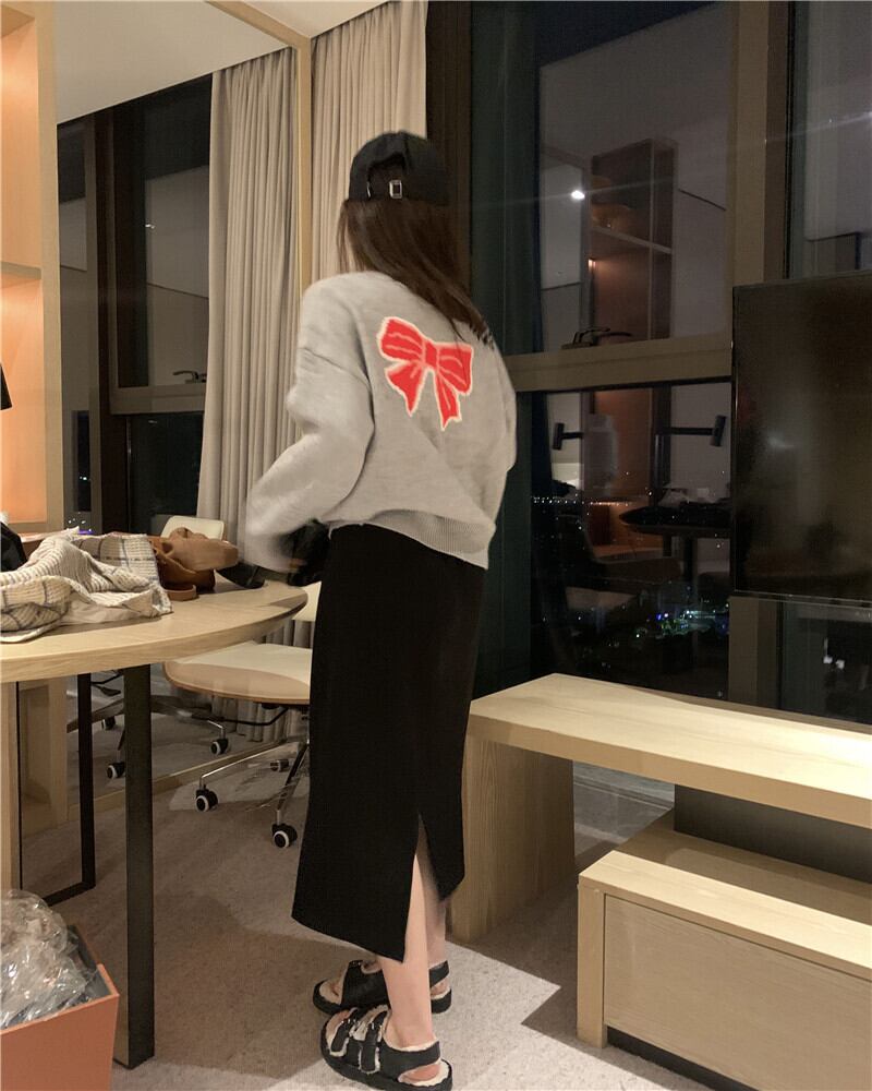 グレーセーター オータムウィンタールーズ薄手リボンロングレッドトップス 秋物 冬物 セブンプリンセス10051473671