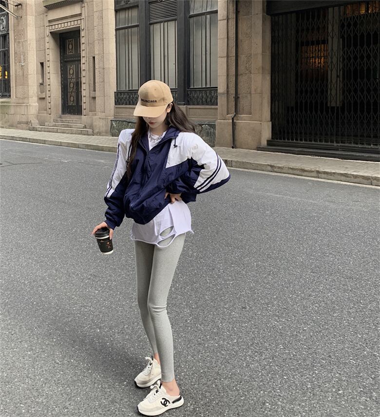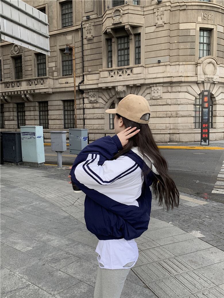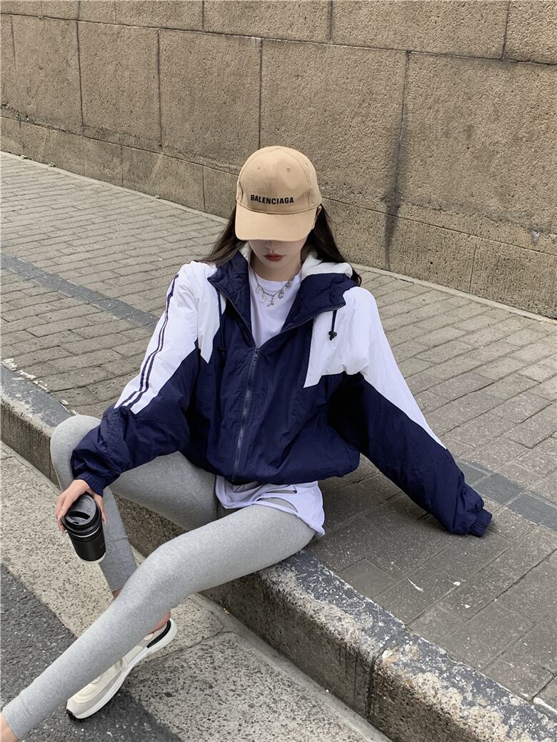 カラージャケット スタイルオータムウィンタールーズフードジッパートップス ロング コットン 秋物 冬物 セブンプリンセス21751867948