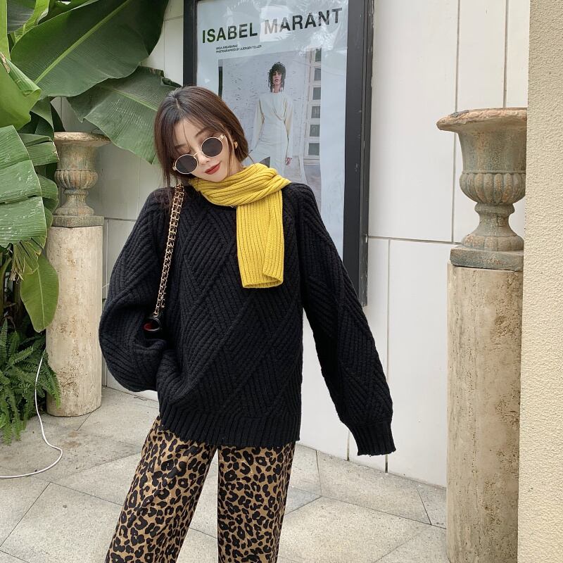 レオパードプリント柄パンツ ルーズスタンダードハイウェストウェストカジュアル レトロ ウィンター 冬物 セブンプリンセス98710130141