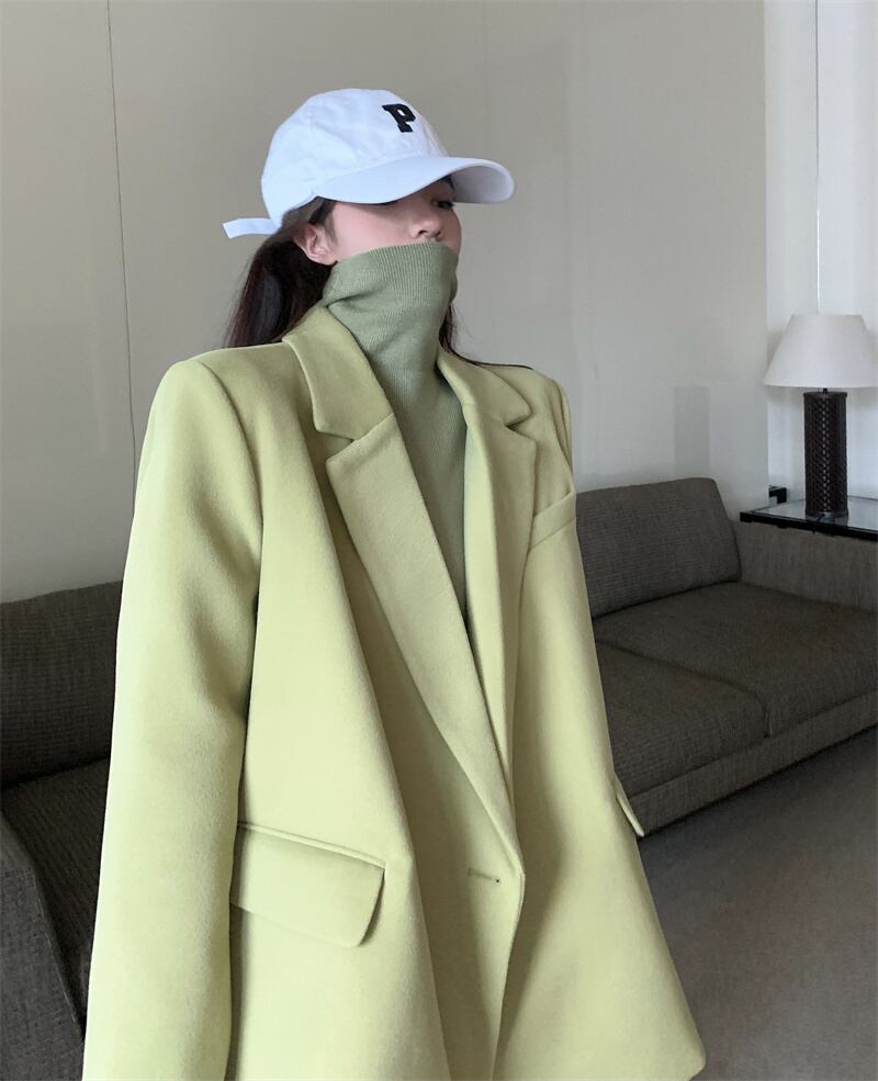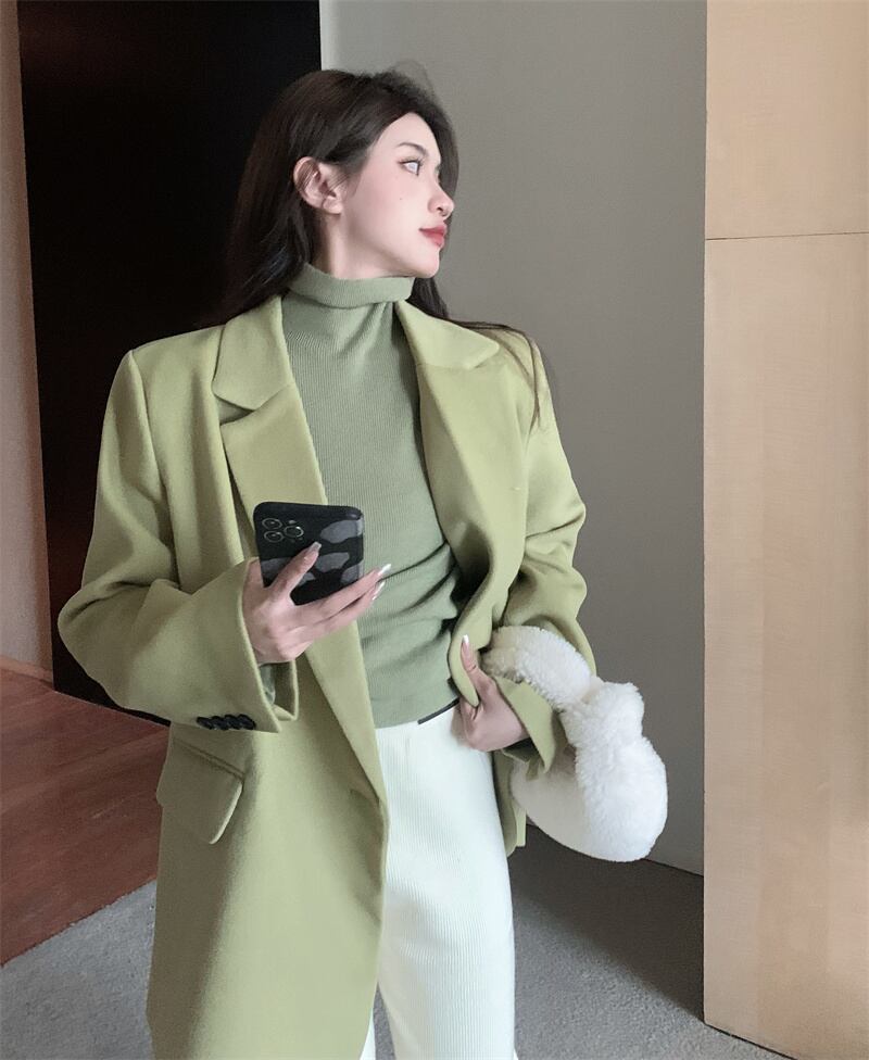 色:フルーツグリーンコート,ダークコーヒーコート,フルーツグリーンのボトミングシャツ,黒底シャツ