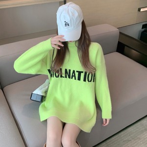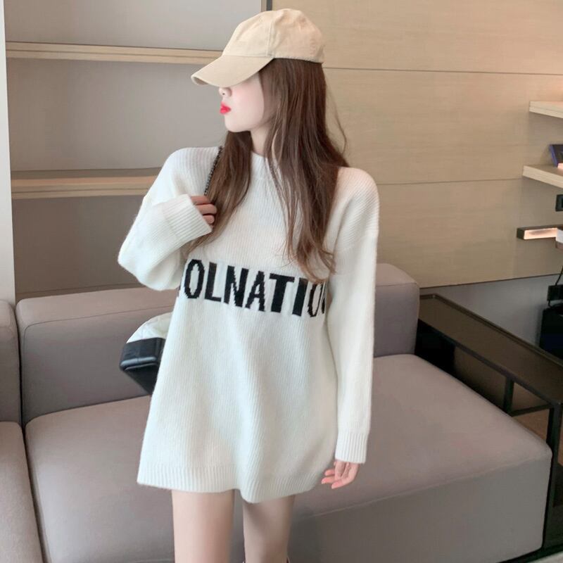 ラウンドネックセーター レディースオータムウィンタールーズニットプルオーバー トップス ロング 秋物 冬物 Oネック セブンプリンセス12617495081
