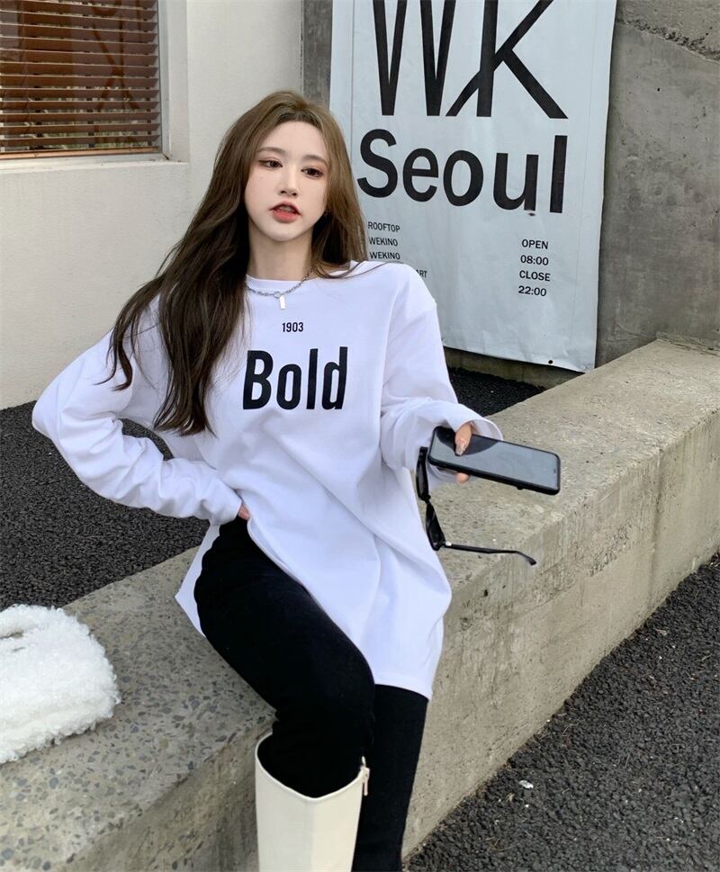 ホワイトTシャツ シャツ ルーズトップス ロング オータム 秋物 ウィンター 冬物 セブンプリンセス32667360253