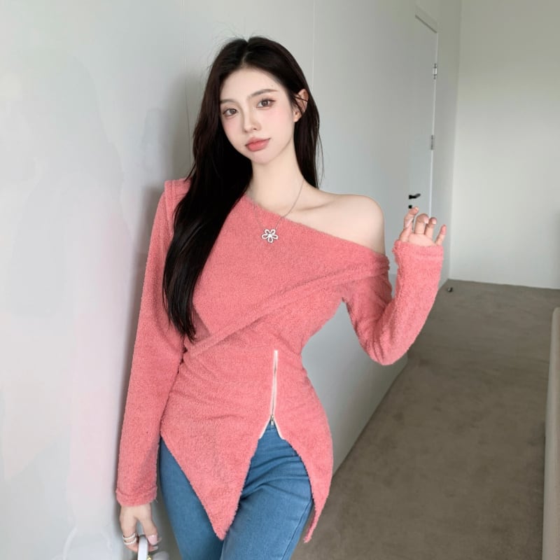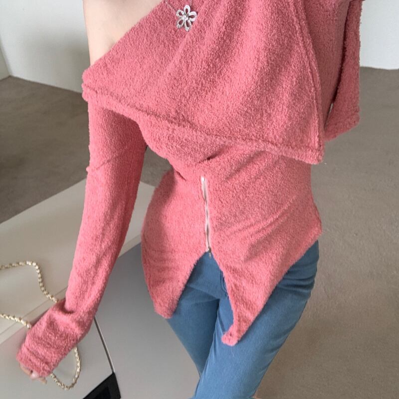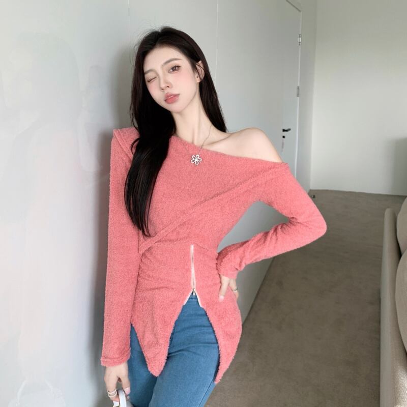 シャツ レディースオータムウィンタースリムスタイルTシャツ トップス ロング 秋物 冬物 オフショルダー セブンプリンセス43119171052