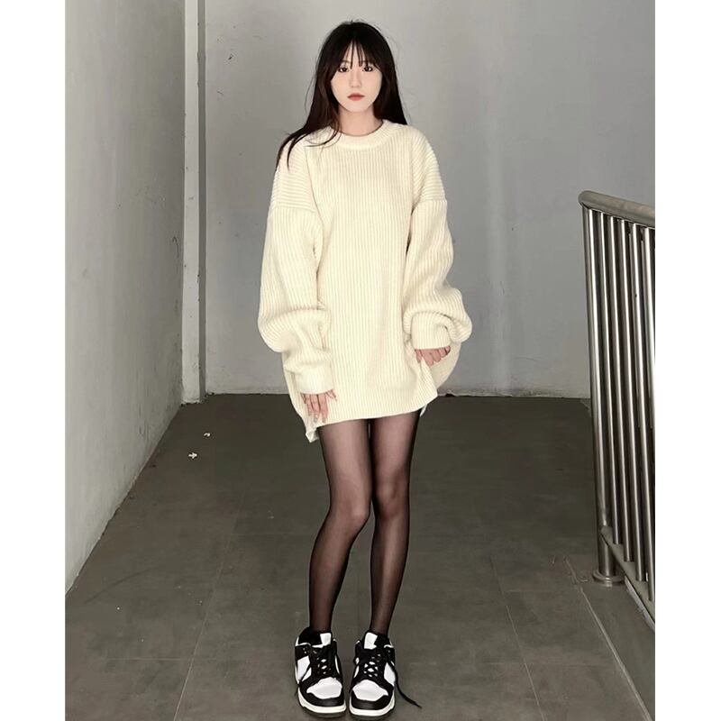 セーター レディースウィンタールーズ薄手ニットラウンドネックトップス ロング ホワイト 冬物 Oネック セブンプリンセス28061398151