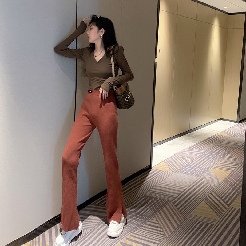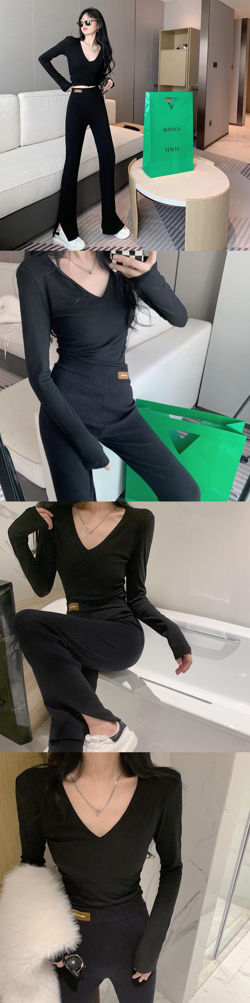 VネックTシャツ シャツ ウィンターベルベット薄手パンツ ロング レッド 冬物 セブンプリンセス61503630525