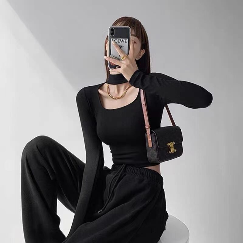 ショートブラックシャツ レディーススプリングオータムスタイルTシャツ ロングトップス 長袖 春物 秋物 セブンプリンセス89577472019