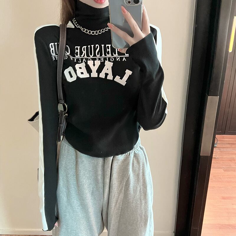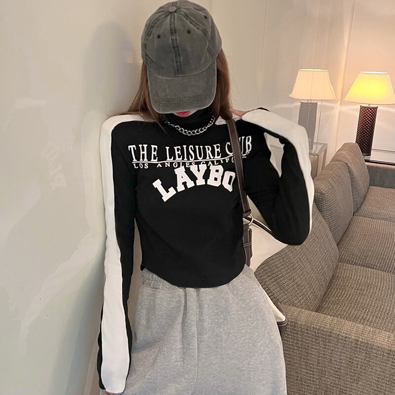 シャツ レディースオータムウィンタープリントスリムTシャツ ショートトップス ロング 秋物 冬物 セブンプリンセス85306983030